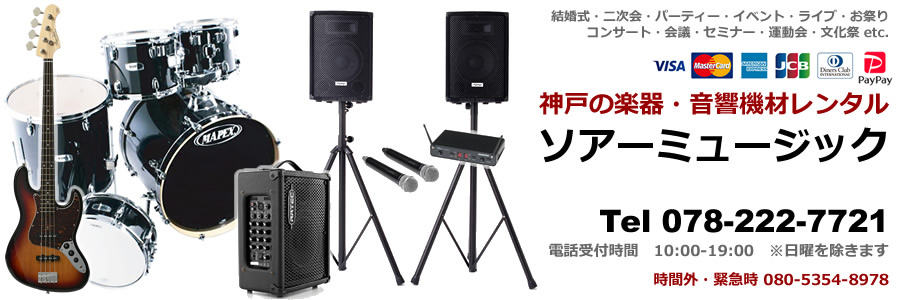 イベントやパーティ、結婚式の披露宴や二次会、各種行事などに!アンプやドラムセットなどの楽器と、マイクやスピーカーなど音響機材のレンタルなら当店へお任せ下さい! 配送・設営も承ります!