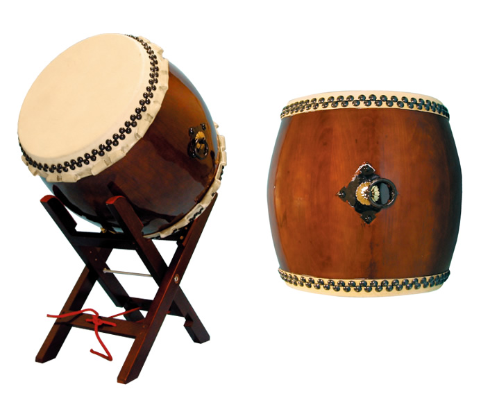 宮太鼓とも呼ばれる定番の和太鼓。大人向けの大きめサイズで質感、サウンドともに本格的な和太鼓(1尺8寸)とスタンド、バチのセットです。お祭りや神社、町内のイベント、演奏に。
