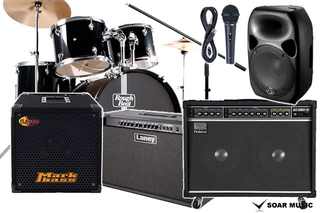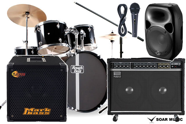 PA不要!これだけでもバンド演奏が可能な簡単セットです。(ギター本体・ベース本体は別途ご用意下さい。)