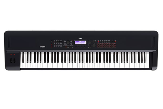 KORGのKROSS 2-88。超軽量・小型ボディに電池駆動もOK。1,000以上のプリセット音色を内蔵。初心者の方でも直感的に操作できるユーザー・インターフェイスを実現しています。
